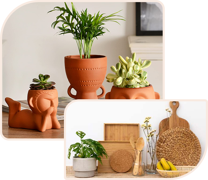 Terracotta Clay, Stoneware, Coconut Shell, Bamboo