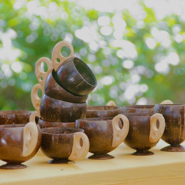 Coconut Shell Drinking Cups are eco-friendly and handcrafted from natural coconut shells, making them sustainable and reusable. They add a rustic charm while being safe and chemical-free. Lightweight yet durable, they are perfect for serving beverages in a natural way.