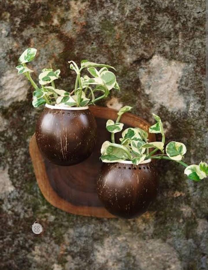 Coconut Shell Wall Planters are eco-friendly, handcrafted planters perfect for growing small plants or succulents. Lightweight and durable, they add a rustic, natural charm to walls and interiors. Sustainable and stylish, they bring greenery into homes in an environmentally conscious way.
